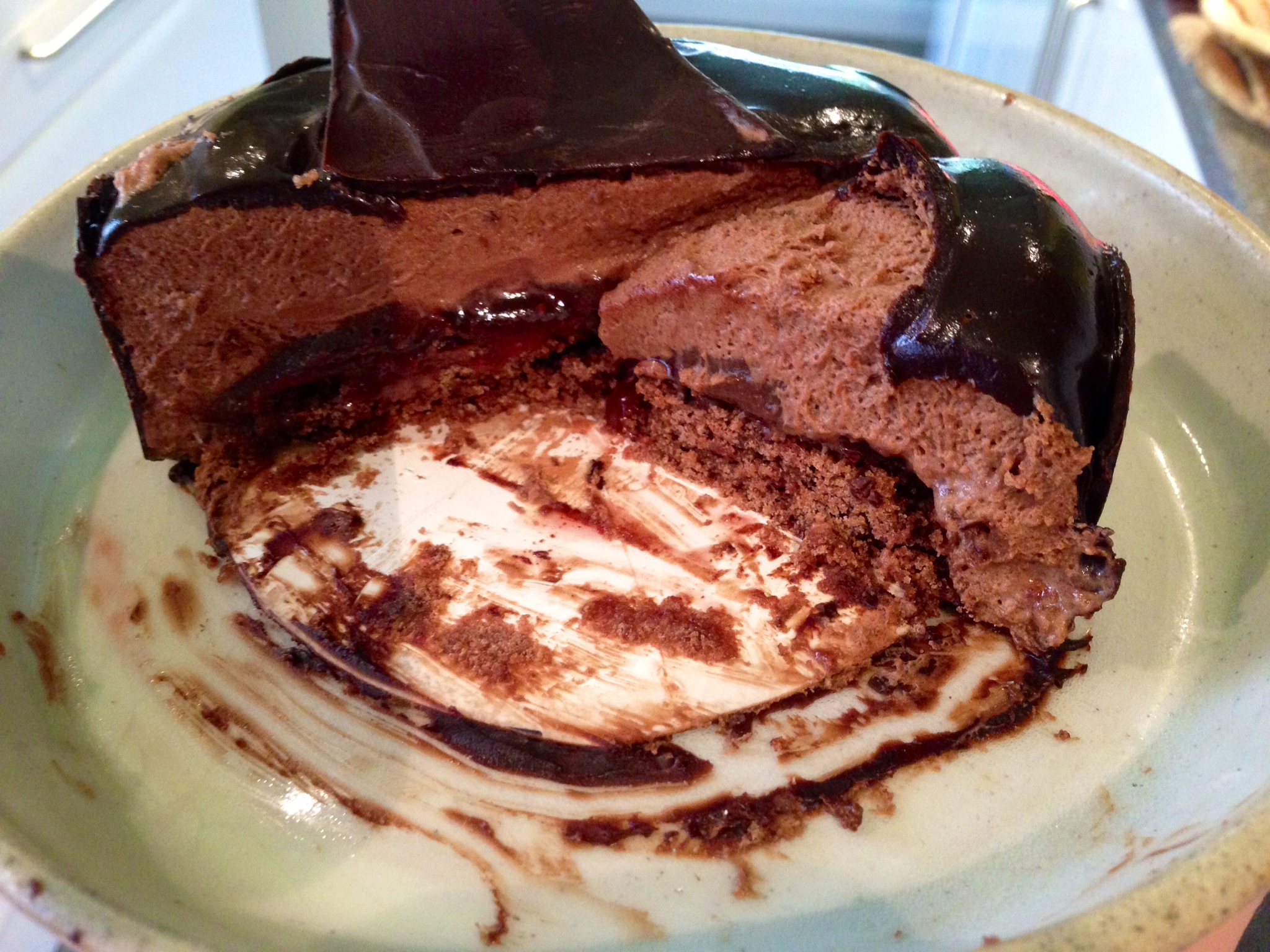 Here is a picture of the entremet cut in half, so you can see the layers – it’s not the best photo I’m afraid.