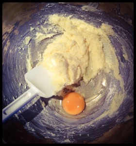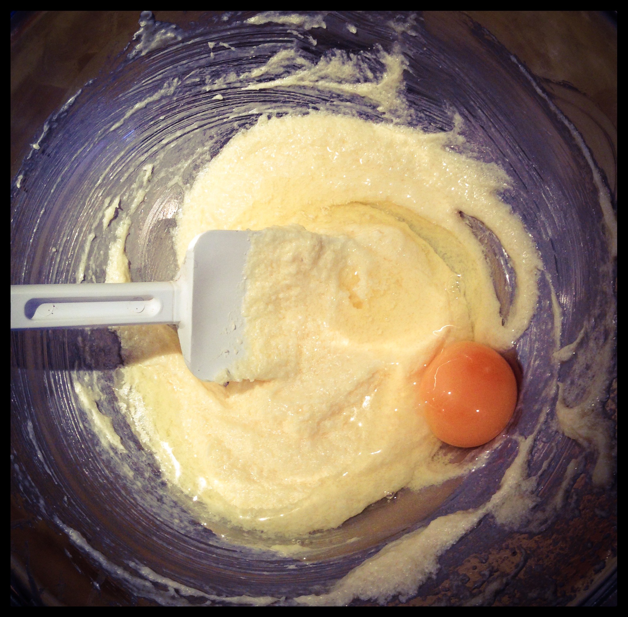 The next step was to add one of the two eggs and beat it in until the mixture is light and fluffy.