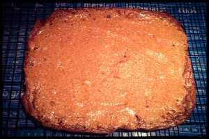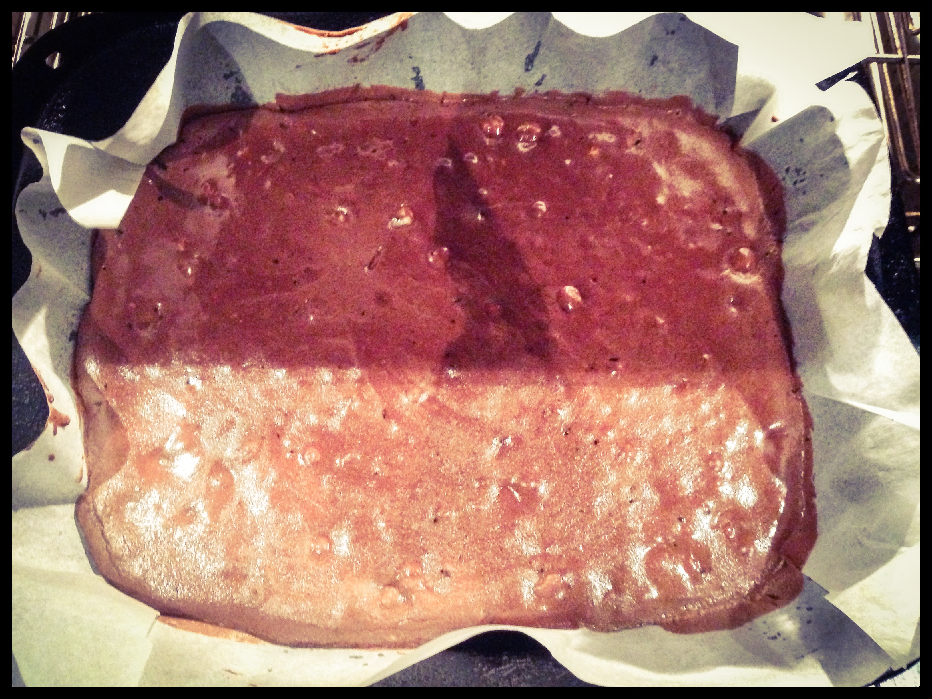 Then I added the chopped hazelnuts to the batter and poured it into a lined baking tray and cooked it in the oven for 15mins.