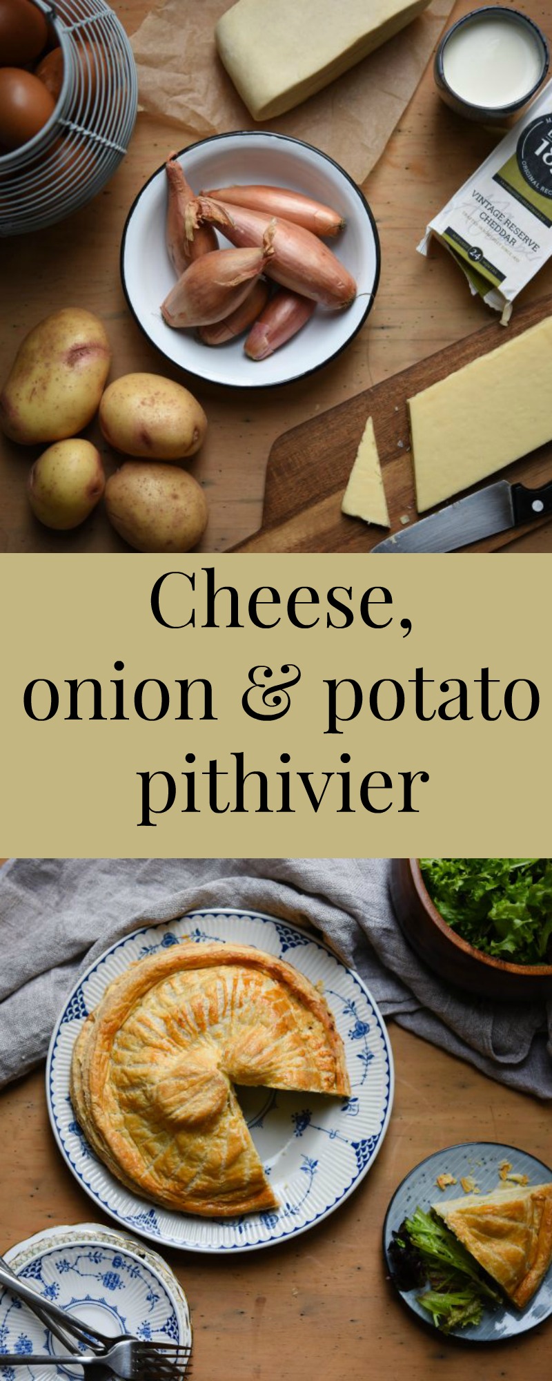 This cheese, onion & potato pithivier is really easy to make and its great hot or cold, because the layers of potato and the cheese are quite dense this slices really well when it’s cold and would be great for picnics or to pack in a lunch box.