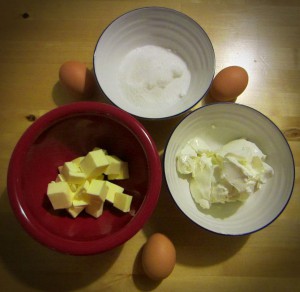 With my butter softened (not melted) in a saucepan over a gentle heat, I removed the pan from the heat and whisked in the sugar and eggs. Then I added the cream cheese and whisked the mixture until it was completely smooth.