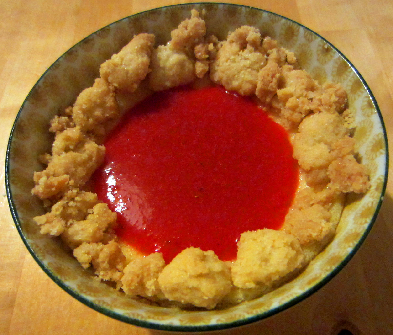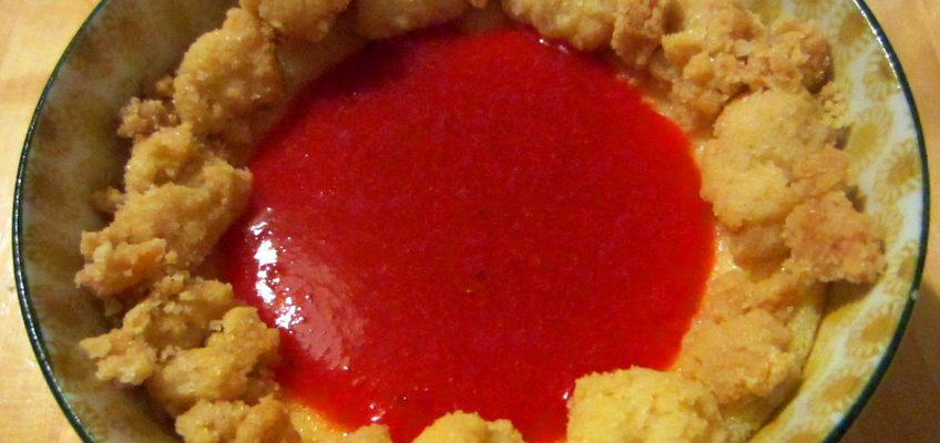These tasted great. Light, fluffy, almost cake-like. The strawberry was really sharp, this worked well with the crumble as that was quite sweet. I am tempted to try making this as one large cheesecake. I would still serve the crumble on the top, as it retains its crunch this way. It’s also nice that it isn’t all compacted in one hard lump, like in a regular cheesecake.