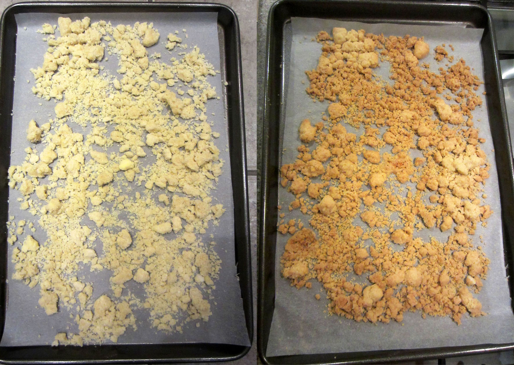 Then the dough was crumbled onto a baking sheet and baked in the oven for 10 minutes or until golden.