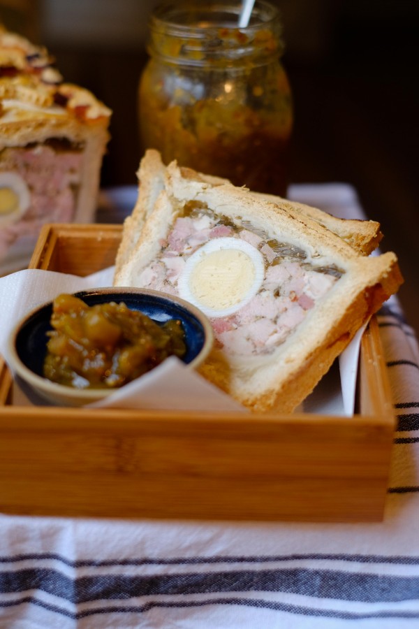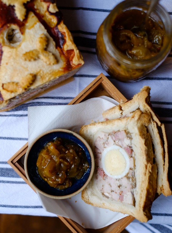 Some of you may not be familiar with gala pie at all, it’s basically a pork pie cooked in a loaf tin with a central column of boiled eggs running through the middle. Apparently when this is produced commercially, they create one long egg for the middle! They boil the yolks in a tube to get a cylinder and then they place the cooked yolks in a larger tube and put egg white around the yolks and boil again. This means they are left with a perfect tube of egg. Pure alchemy!