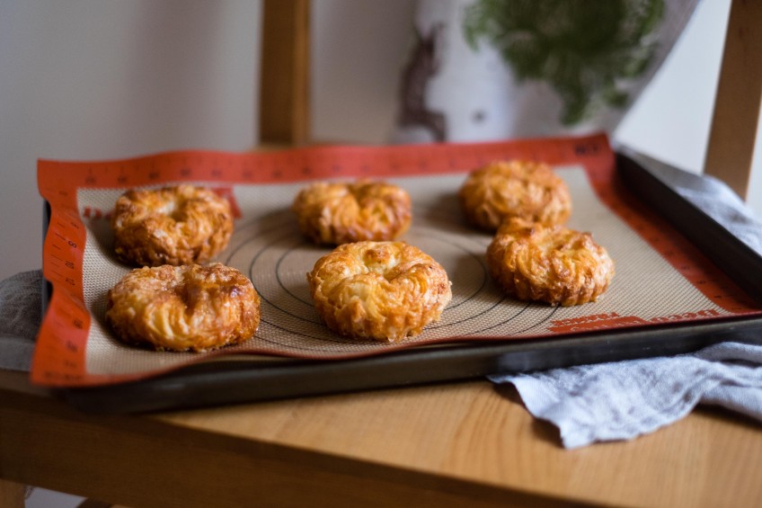 Whilst I was photographing these kouign-amann I did have a little helper, who really wanted to try one himself, but he was very restrained and after I finished photographing them, he may have had the tiniest of crumbs.