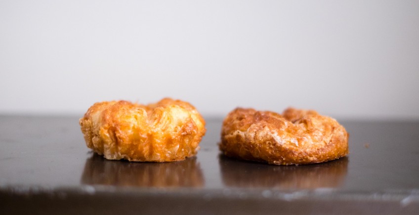 I used my AEG SteamBake oven to bake half the batch of kouign-amann and then I baked the other half without steam, so that I could do one of those TV style comparisons. The batch baked with steam had more space between the layers, a more even rise in the oven and a really delicious crunchy texture on the outside and soft on the inside. The SteamBaked kouign-amann is the one on the left in both photos.