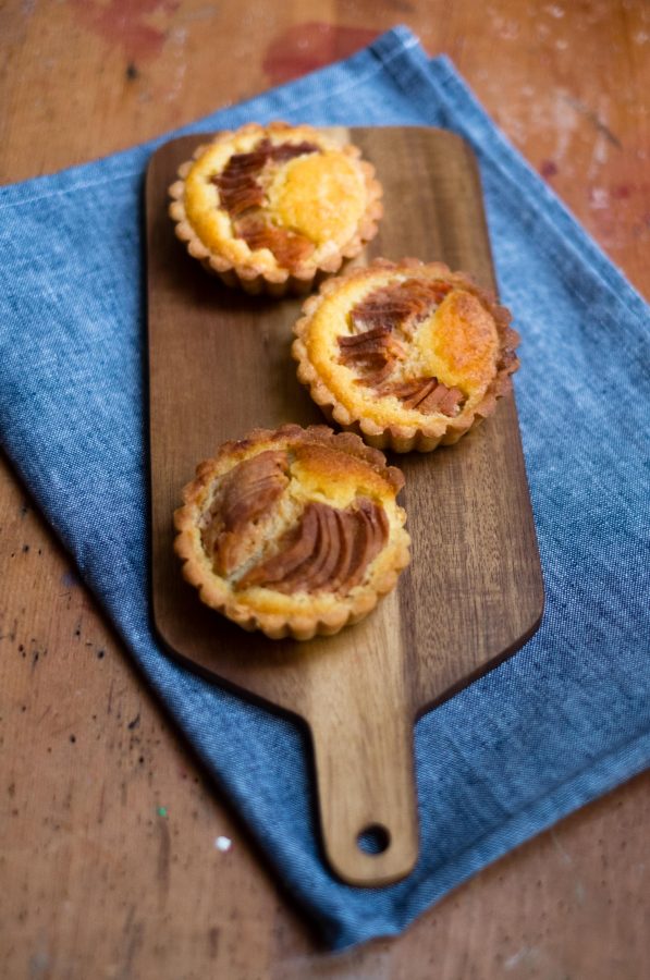 So instead of giving in, I made the tart again and I’m so pleased I did, because it’s really, really worth it! The first time I made the quince frangipane tart I made 8 mini tarts that I filled with this delicious Fortnum & Mason rose petal jelly. I’m undecided which is my favourite, the ginger or the rose so feel free to experiment with different flavours for the curd/jam layer.