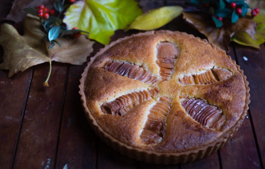 - Preheat the oven to 190C/170C Fan/gas 5. Place the tart on the tray and bake for about 45–50 minutes until the almond filling and pastry are golden brown.