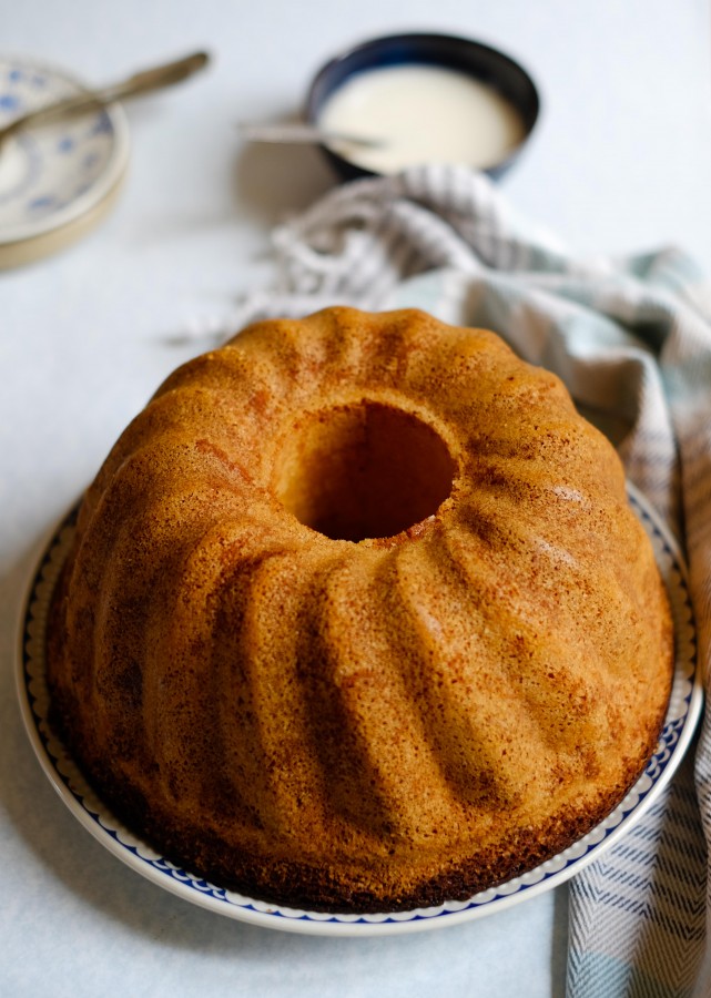 This rum bundt cake or tortuga rum cake comes from the Caribbean and whilst delicious it has a lot of rum in it. The cake is baked with rum, soaked with rum after baking and then covered in a rum glaze. If you wait 24 hours to eat this cake, the ground almonds soak up all of that rum syrup and the cake becomes moist and doughnut like. It’s completely delicious.