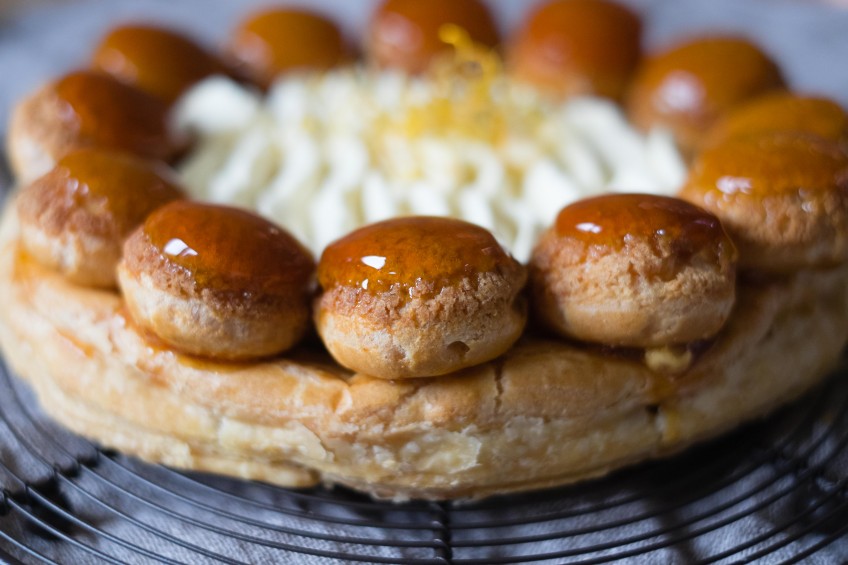 Two years on from starting this blog, I felt ready to tackle the mighty St Honore, I’ve got better at making choux and I quite like making puff pastry and caramel is one of the most fun things to work with, despite how hot it gets. So I took this recipe on, in what has become my usual way of working, the piecemeal approach.