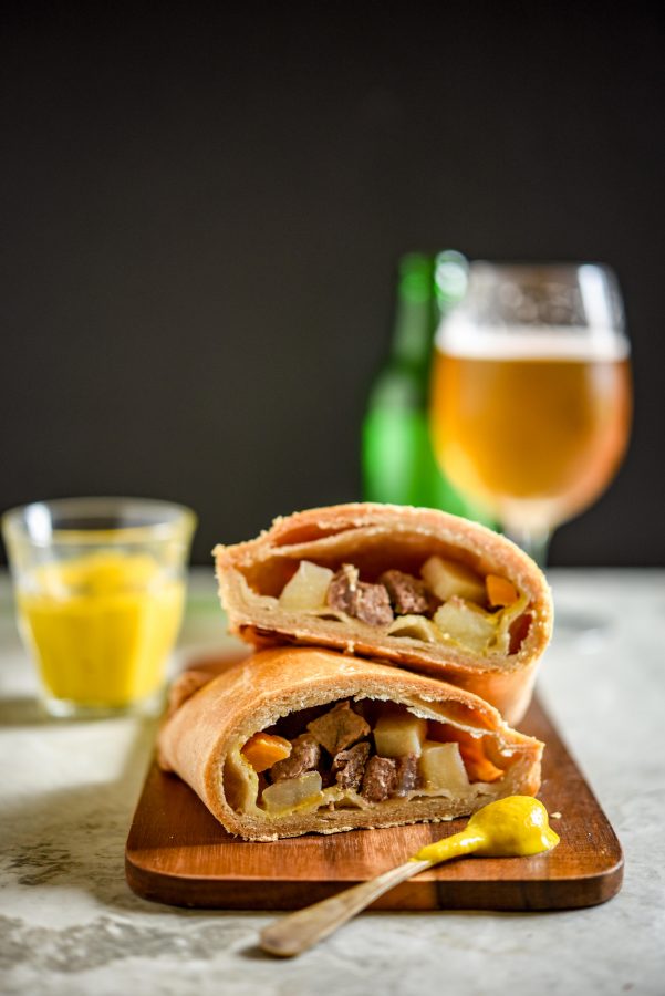They are delicious steak, swede and mustard pasties that are perfect for lunchboxes, picnics and roadtrips. The pastry is not as light as you might expect from a puff pastry because of the dripping, so be sure to roll the pastry out as thinly as you can manage. The crimped edge can become quite tough otherwise.