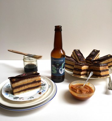 • Hazelnut Dacquoise with Salted Chocolate Ganache