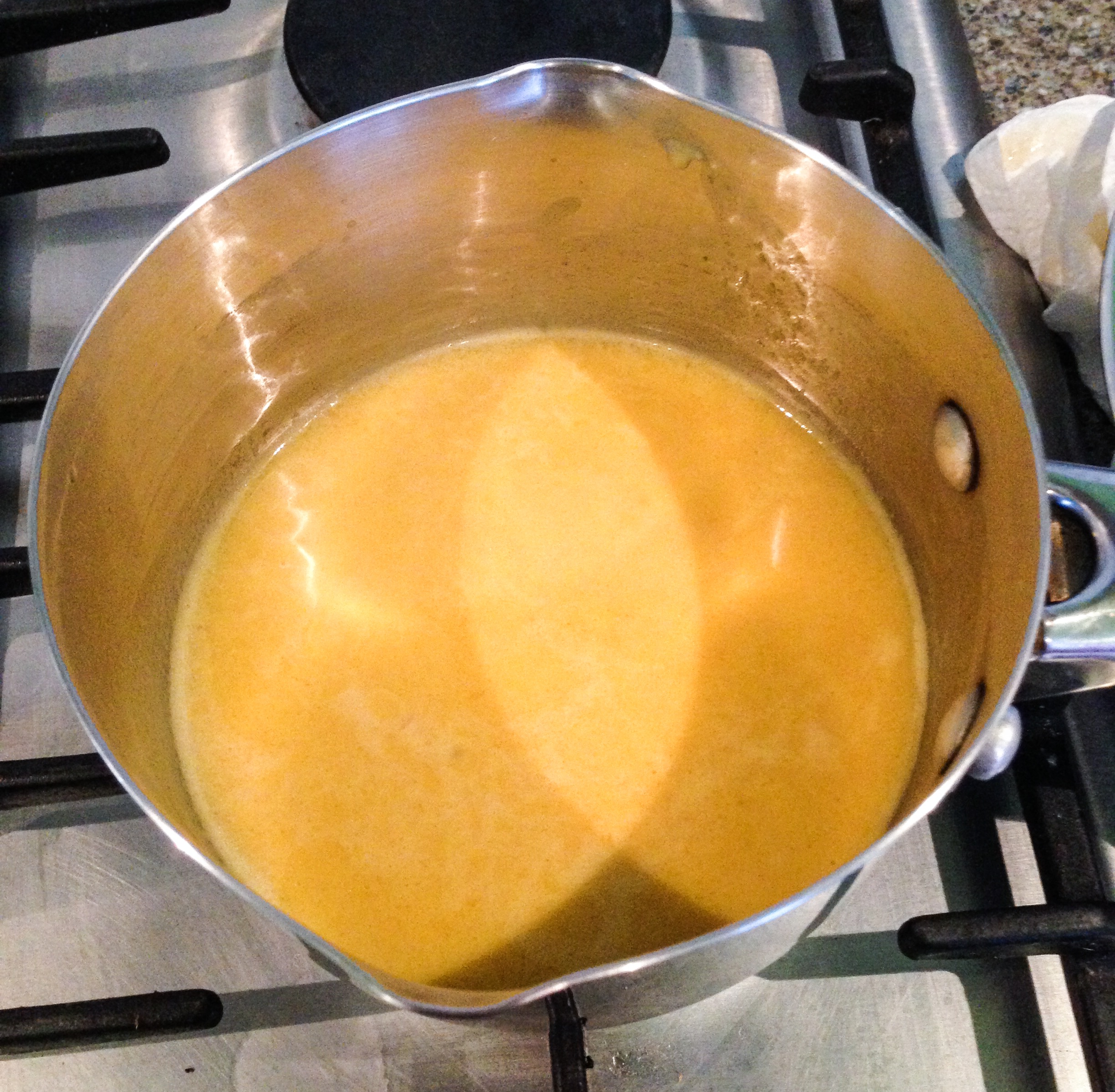 The ganache needed to be made first, so that it could set in the fridge. It’s a very simple recipe, so I wont go into detail about how I made it. There was a new ingredient this week as well, some passion fruit puree from Brazil that was kindly donated to me (thank you Diana)!