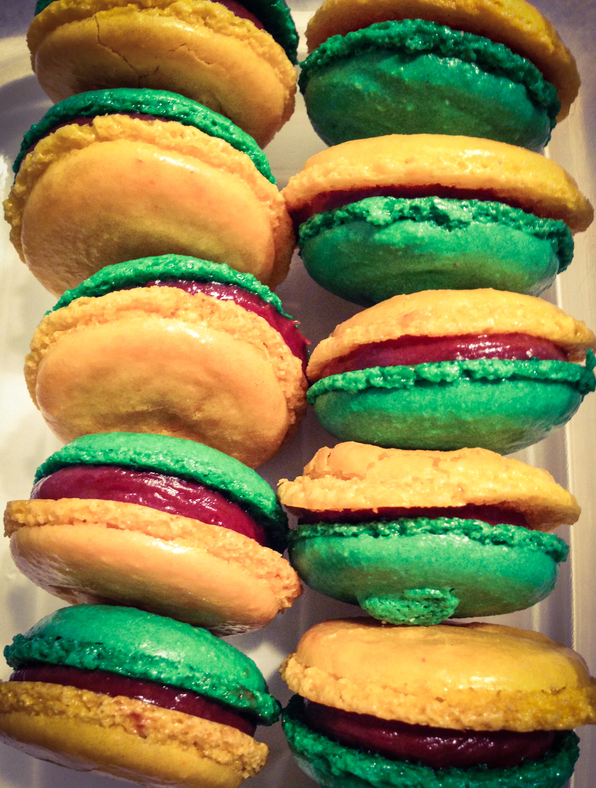 The resulting meringues had an inconsistent texture and did not look as smooth as normal. I did not have a clue what had gone wrong. Disappointed I filled them with the passion fruit ganache and sandwiched them together.