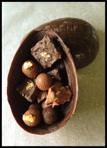 I made some chocolate eggs too, these didn’t turn out as perfectly as I had hoped. I think that I under filled the moulds as the eggs were very fragile and melted quite quickly as I worked with them.