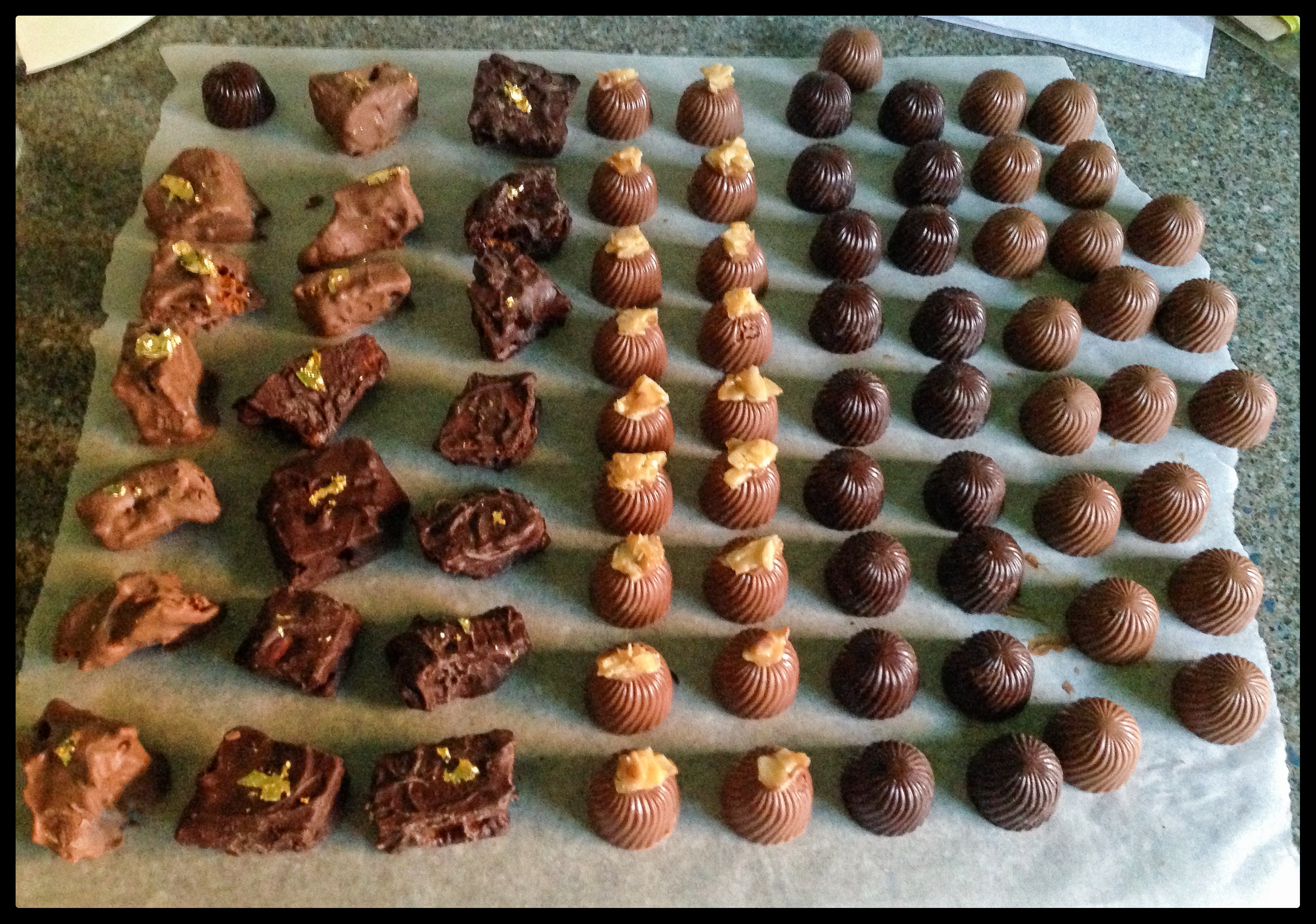 The next evening, I set about making my ganache and other confectionery, ready to be coated in tempered chocolate.