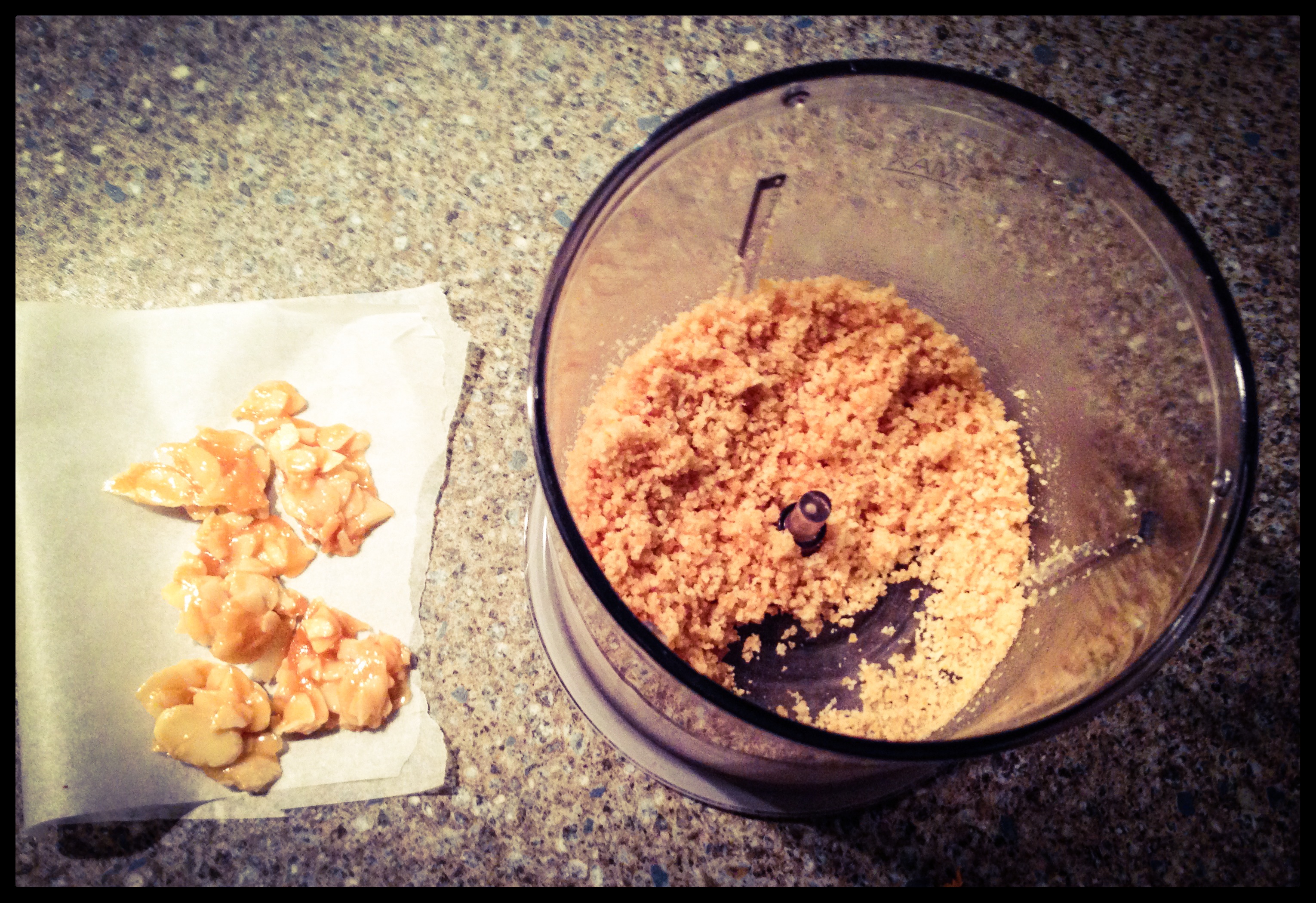 Still, pressing on, with even more sugar to heat, I made a quick almond brittle. This was to fill and decorate some of my truffles. Again with an unreliable thermometer this was tricky, but it worked out.