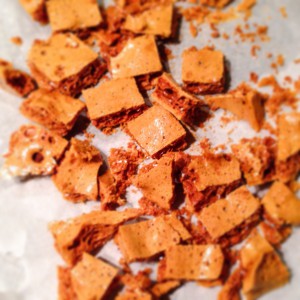 Firstly I made the honeycomb. I never really knew how honeycomb was made, so I was quite excited to this. I needed to heat sugar and golden syrup to 145˚C before the bicarbonate of soda was added.